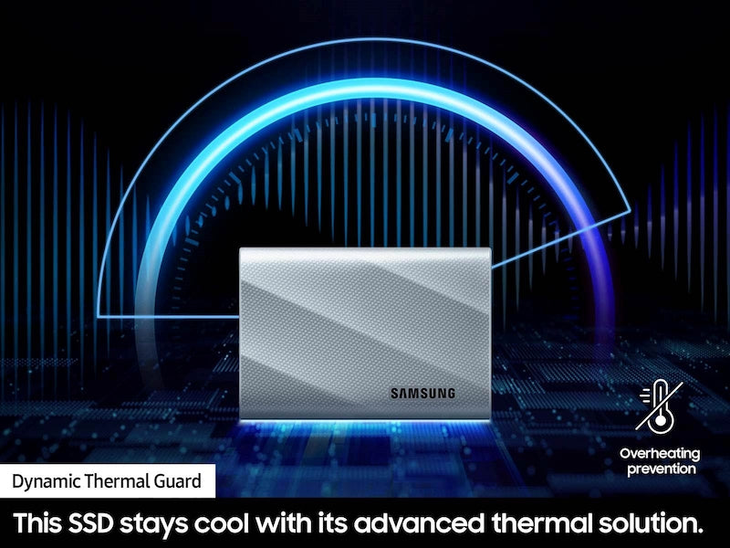 When you’re elbow-deep in a passion project, the T9 Portable SSD stays cool. Its advanced thermal solution withstands and controls heat to keep the SSD at ideal temperatures—even in heavy use.