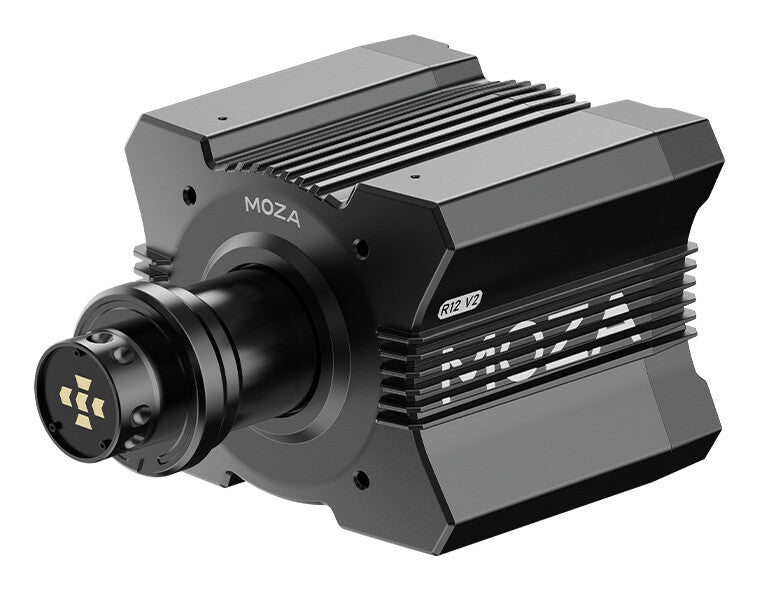 The MOZA R12 V2 is a 12Nm direct drive wheel base for professional sim racing. Featuring a high-torque servo motor, low-cogging skewed-pole design, and the NexGen 4.0 force feedback algorithm, it delivers smooth, precise, and immersive driving. Built from aerospace-grade aluminum alloy with active cooling and full software integration, the R12 V2 offers top-tier performance and reliability for competitive racers.