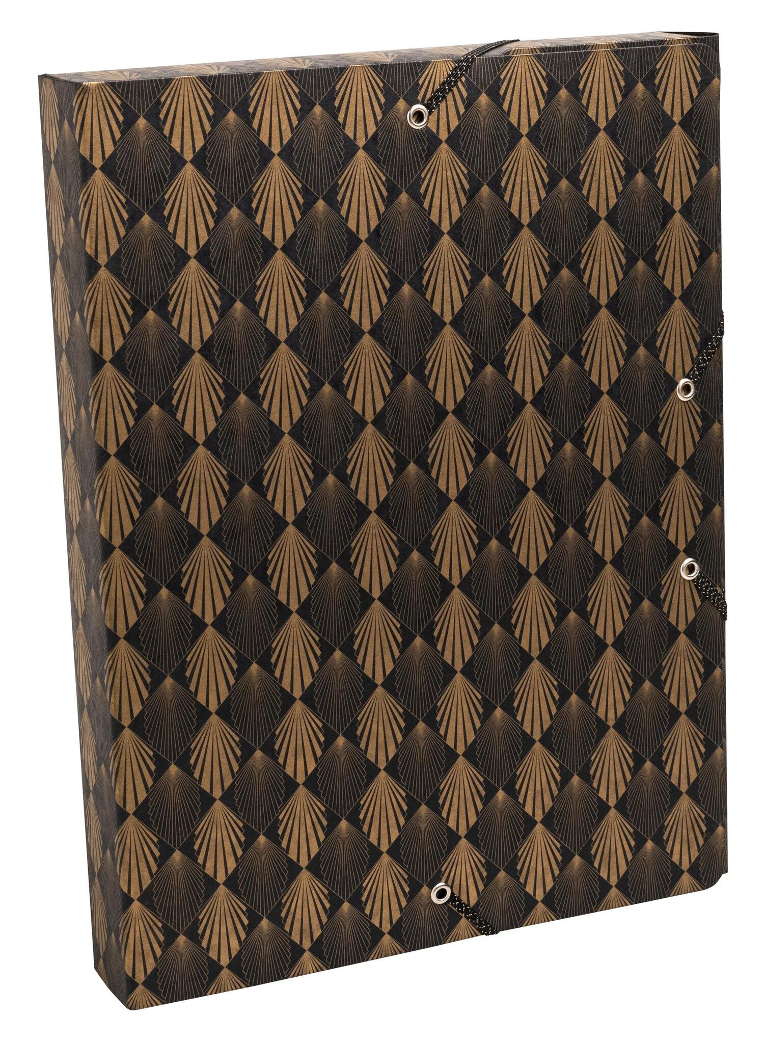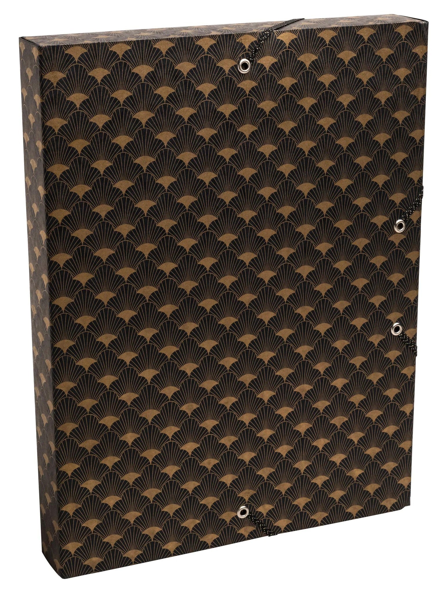 Made from real glossy card - a homogeneous and resistant material - the Exabox filing box from Exacompta has a higher quality appearance and lasts longer. Original black and gold elastics.