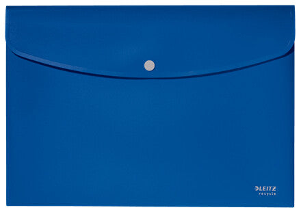Eye-catching, premium quality PP Document Wallet for every day use in school, office and home with push button closure to prevent documents from sliding out. Made from 80% recycled plastic, 100% recyclable and with Blue Angel environmental certification. This robust and practical document wallet perfectly complements other products from the Leitz Recycle range and is made to last. Modern and contemporary green stationery that will look great at home and in the office. With the eco friendly Recycle range from Leitz you can both improve your office environment – and the environment of our planet.