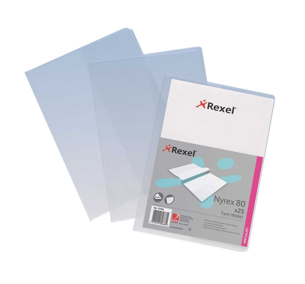 Rexel Nyrex™ Twin Wallets A4 Size Clear (25)