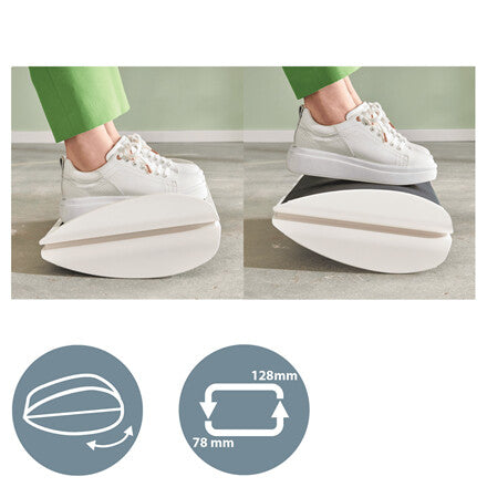 The Leitz Ergo Under Desk Foot Rest is the perfect foot stand to help create a comfortable and active workspace. Designed to provide maximum comfort while sitting, this office foot rocker combines the ergonomic benefits of a rocking footrest with an adjustable foot stand. The adjustable computer foot rest has 2 height settings with both a flat and curved platform to ensure the correct ergonomic posture and typing position. Stay active while you work with the rocking motion to promote healthy blood circulation and increase productivity. With it's minimalist design and matt finish, this stylish foot rest can have a positive impact on wellbeing by effortlessly creating the perfect active working set-up. Combine with other Leitz Ergo products for an inviting and flexible workspace to help you stay active and productive throughout the day.