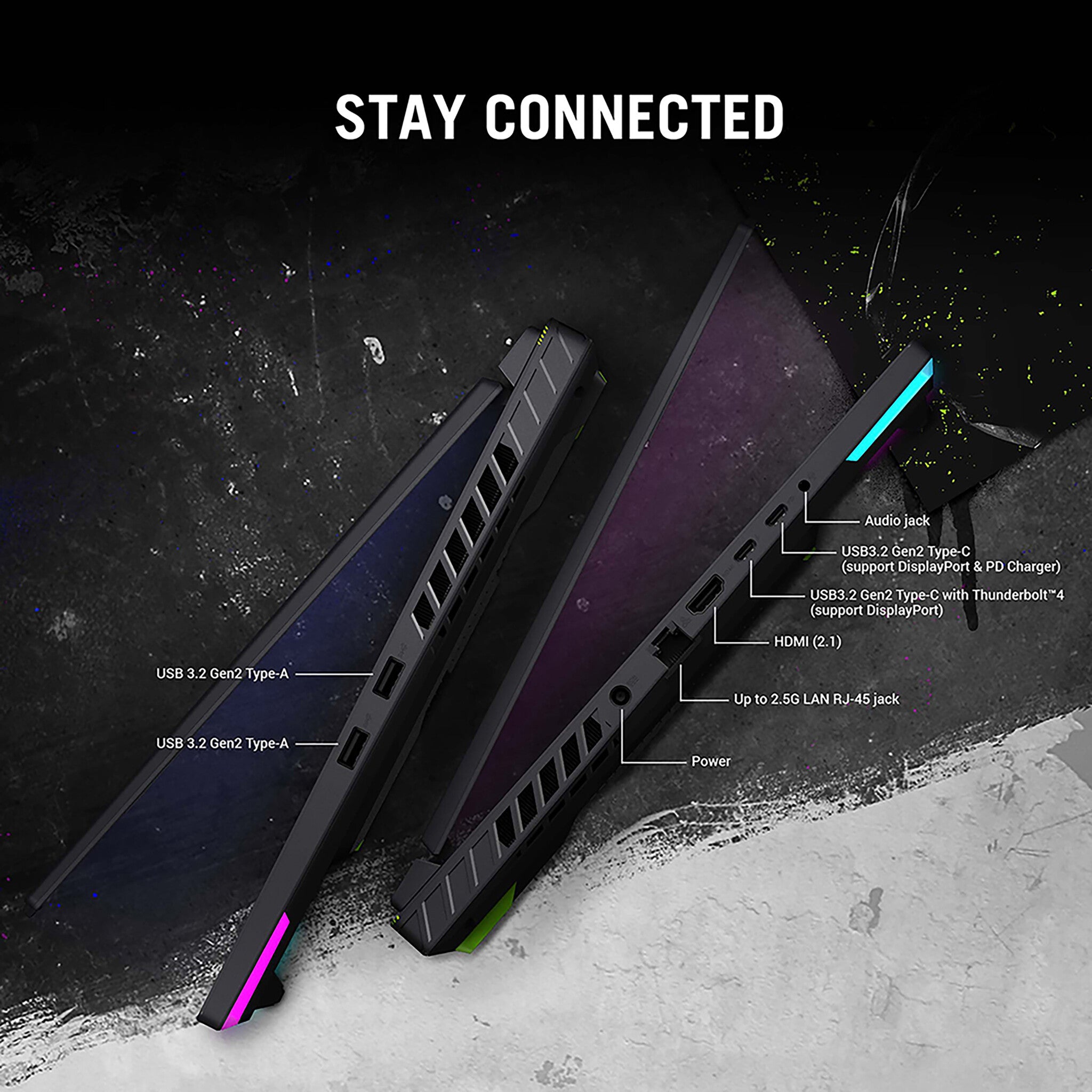 In modern multiplayer games, a stable internet connection is imperative. The Strix G16 is ready to join the fight with a dedicated RJ45 port, as well as the latest Wi-Fi 6E wireless standard. On Wi-Fi 6E supported networks, enjoy access to the newest wireless band, free from clutter and interference from your home’s other wireless devices, ensuring you never lag out again.