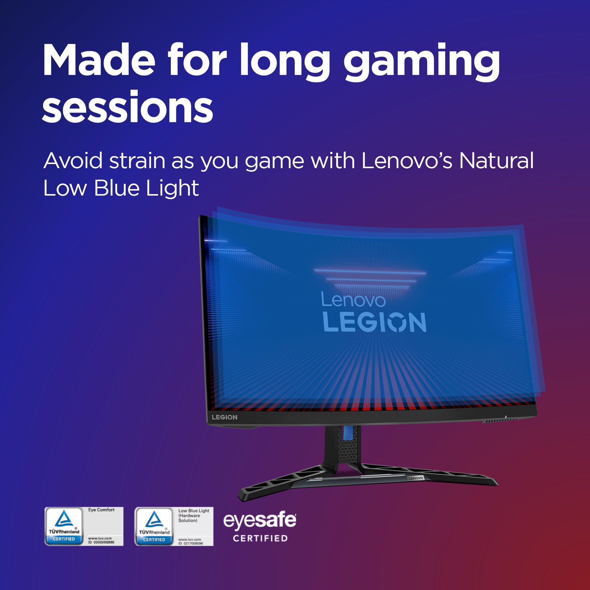 • Avoid strain as you game on with Lenovo’s Natural Low Blue Light technology which reduces harmful blue light without any color distortion.