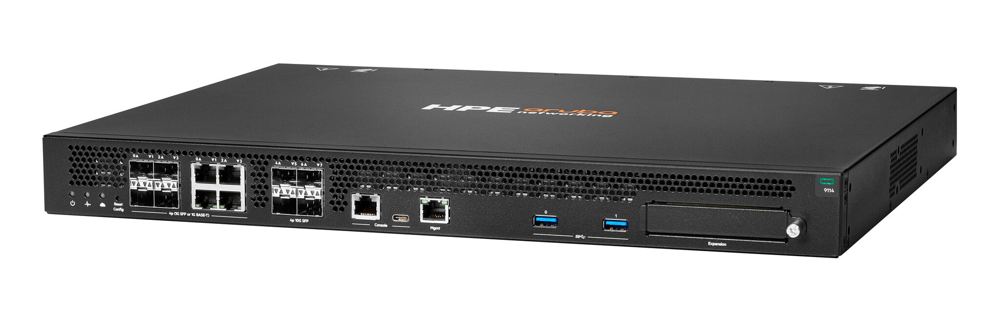 The HPE Aruba Networking 9100 Series Hybrid Gateway is a cloud-optimized edge appliance designed to securely and seamlessly extend enterprise services to medium branch, large branch and small campus networks. Using cloud architecture scale and efficiency together with intelligent edge device security and performance capabilities, the 9100 Hybrid Gateway delivers scalable, high-performance Wi-Fi with enhanced security to the edge. This purpose-built high-performance edge appliance delivers seamless roaming, 24/7 reliability, and always-on connectivity - even during upgrades. Intelligent automation, AI insights, and unified infrastructure management, delivered by AOS-10 and HPE Aruba Networking Central, simplify and power IT operations. This versatile gateway provides advanced wireless capabilities, intelligent routing with both wireless and wired tunnel orchestration, and automated and unified role-based policy enforcement for users and IoT across LAN, WAN, and SD-WAN.