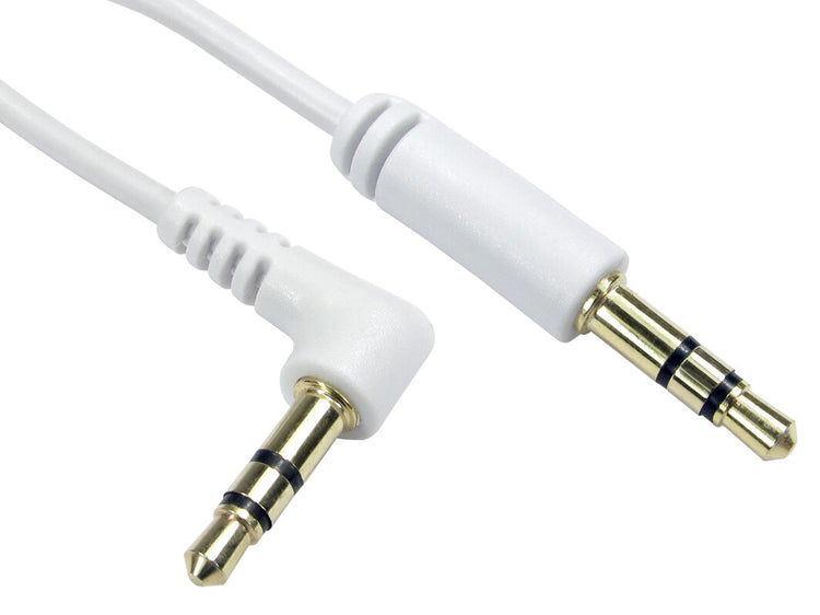 Our straight to right angled range of audio cables are assembled with gold flashed connectors and available in black or white and in various lengths. The right angle connector is easier to connect equipment where a straight connector may cause the cable to bend and risking damage to the cable. While they have strain relief, the right angle can also act as strain relief within itself.