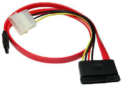 Serial ATA combo power & data cable, male 4 pin molex to 15 pin SATA power female connector, female 7 pin data cable.