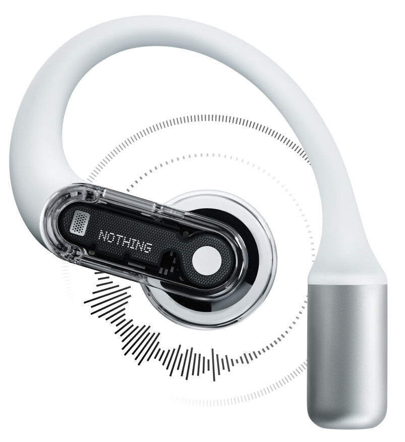 Ear (open)'s driver is made up of components that are nearly 30% lighter than those used in typical earbuds. The unique lightness boosts mid and high frequencies by up to 3 dB resulting in a clear, more vibrant sound.