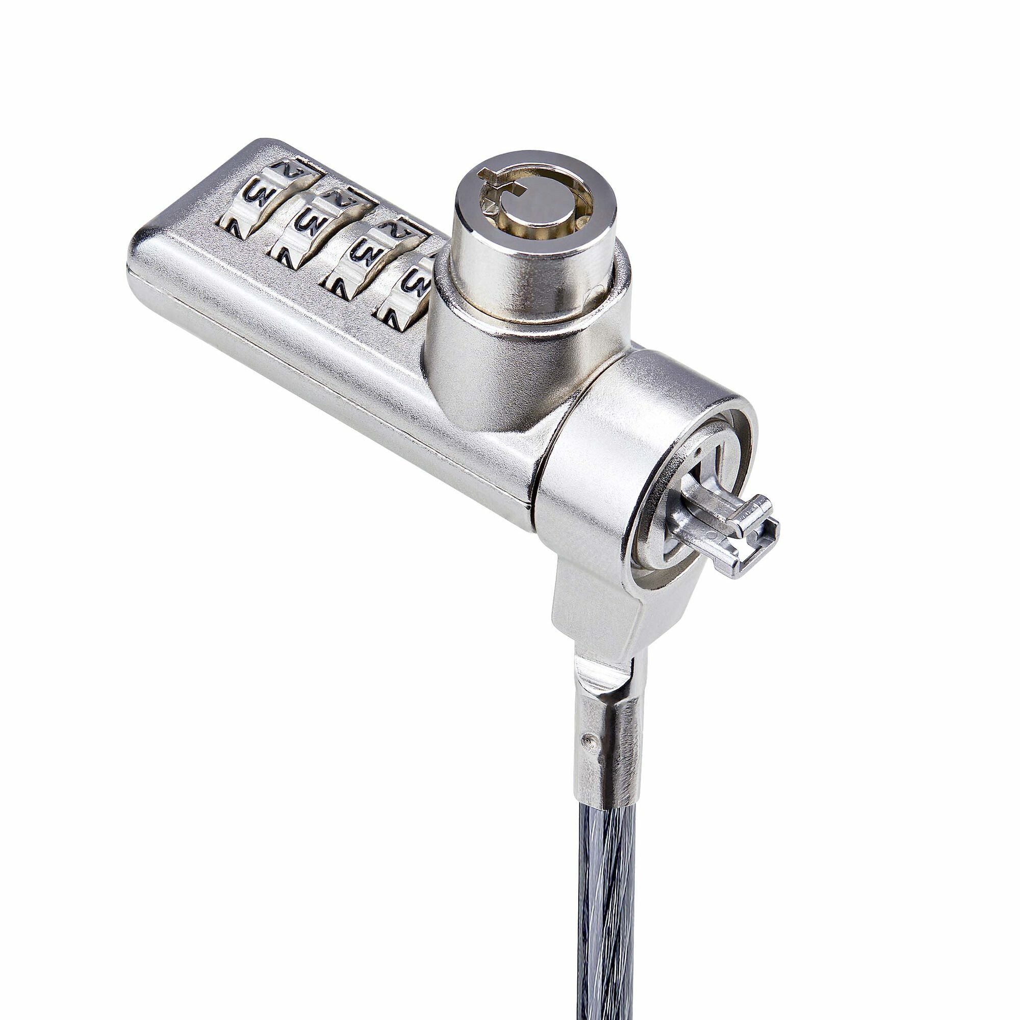 Ideal for use at the office or when traveling, the keyed and combination laptop lock features a strong steel cable (4.4mm diameter). To secure the device in different workspaces, the flexible cut-resistant steel cable bends to loop around a stationary post or object.