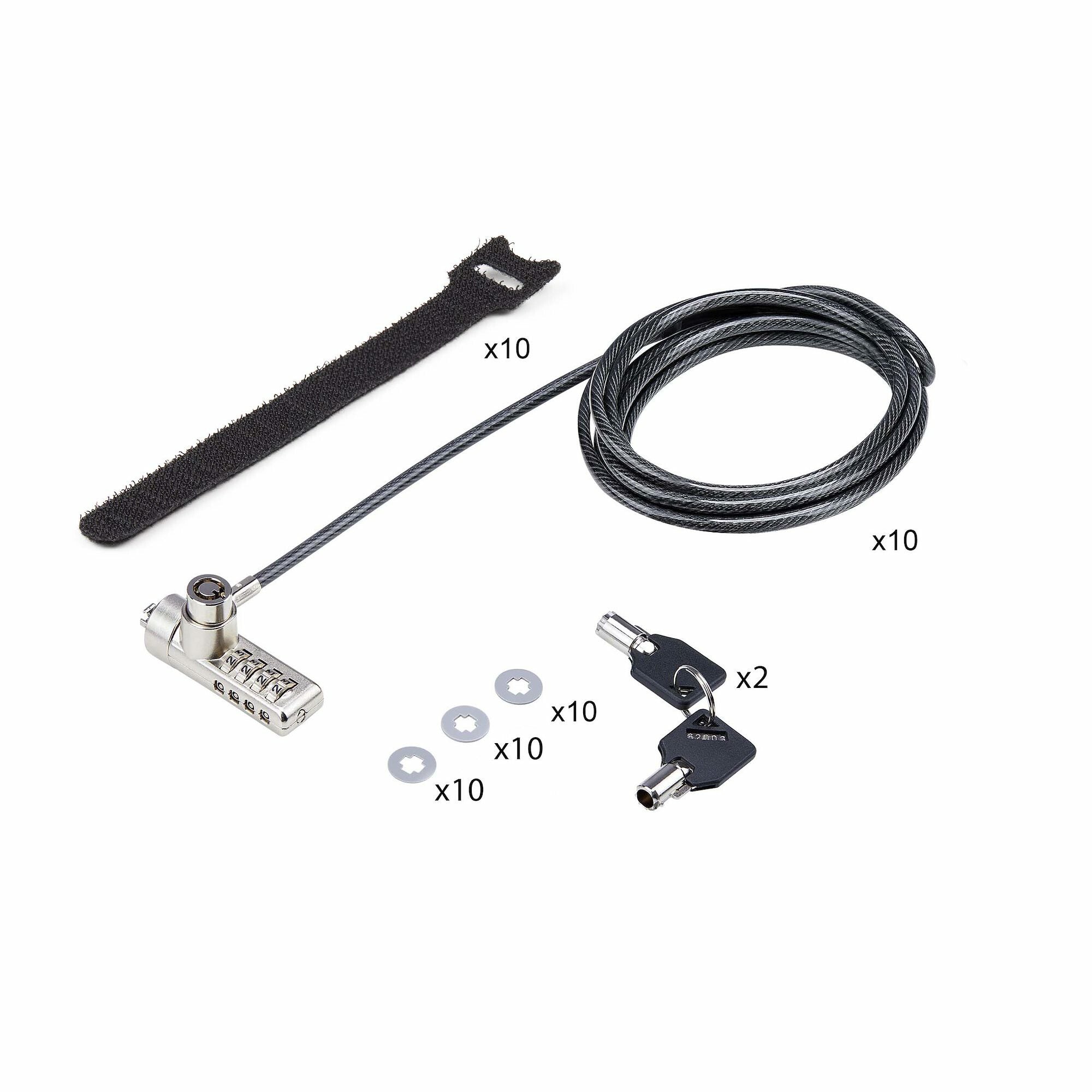 StarTech.com 10-Pack Dual-Access Laptop Lock, 6.5ft (2m) Keyed Alike and Combination Security Cable Lock for K-Slot Devices, Computer Anti-Theft Steel Cable