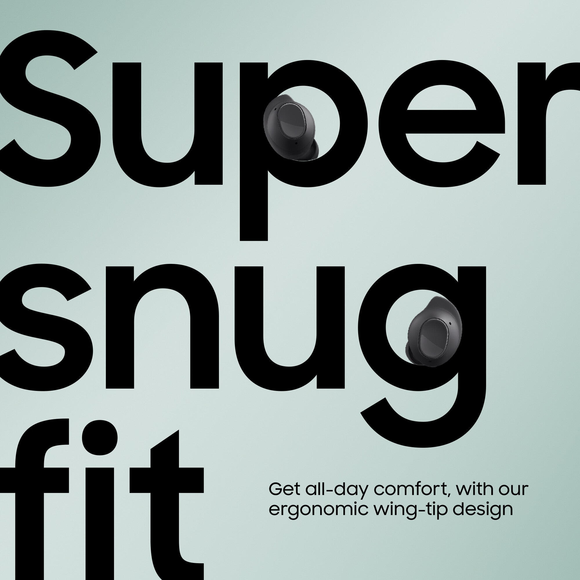 Galaxy Buds FE's small, ergonomic design gives added comfort as they snugly nestle in your ears and stay securely in place. Customise your earbud fit with different size choices for both wing tips and ear tips.