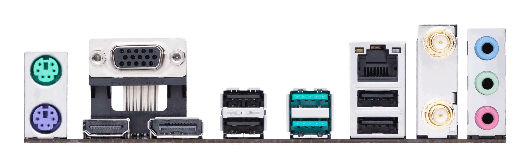 Numerous USB ports support high-end rigs loaded with peripherals, including rear-panel USB Type-A ports with fast USB 3.2 Gen 2 for transmission speeds of up to 10 Gbps.