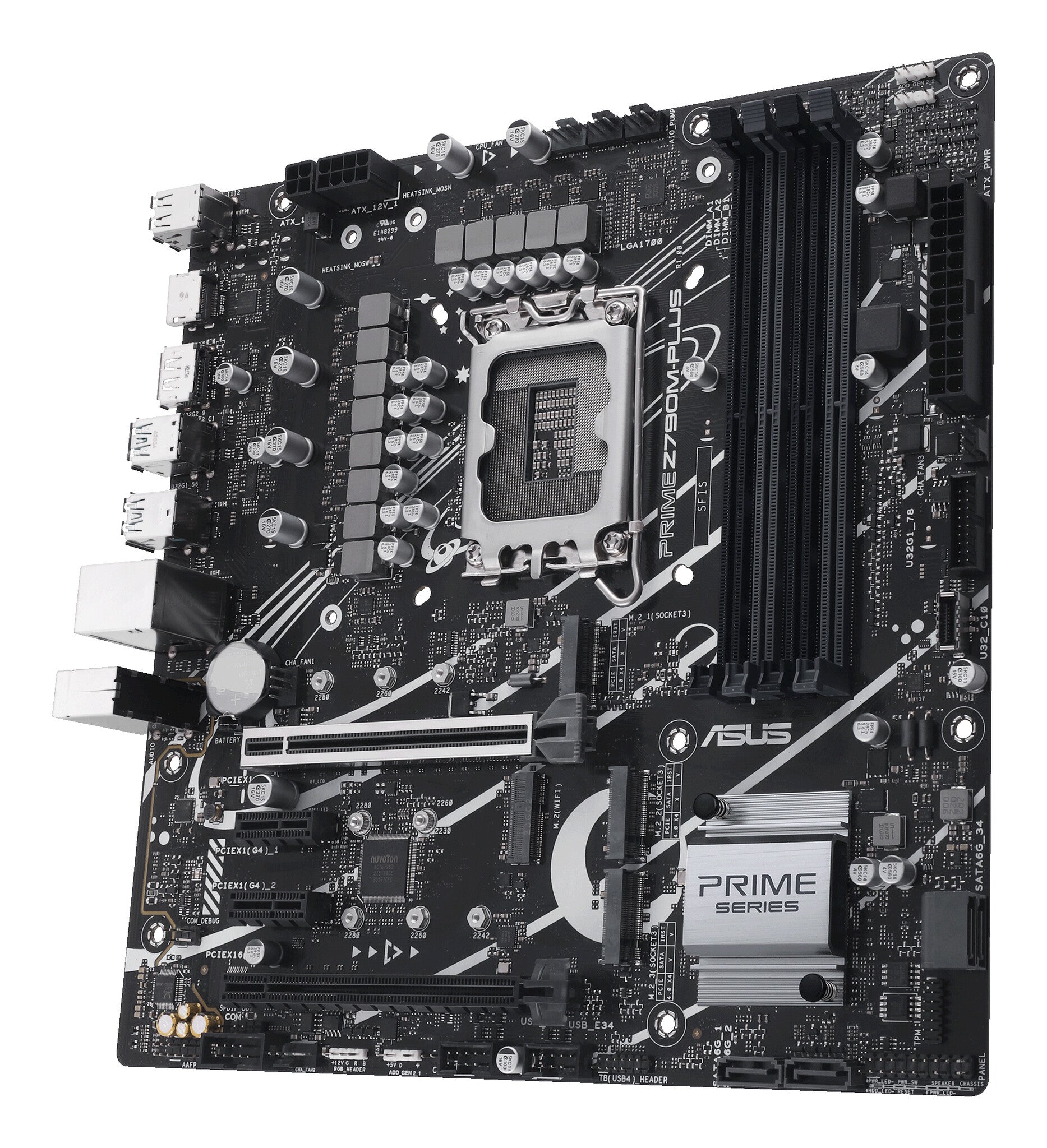 The PRIME Z790M-PLUS motherboard is built to handle the high core counts and bandwidth demands of 13th Gen Intel® Core™ Processors. ASUS Z790 motherboard provides all the fundamentals to boost daily productivity, so your system will be ready for action with stable power, intuitive cooling and flexible data transfer options.