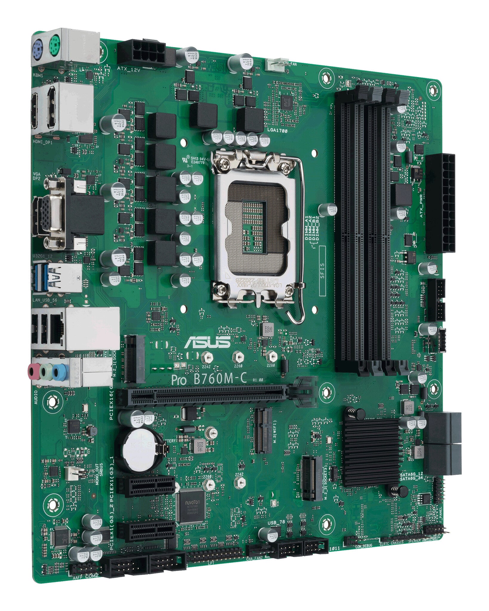 This business motherboard is a DDR5-compatible motherboard that optimizes memory module speeds and stability, while providing an advanced voltage delivery architecture for greater energy efficiency.