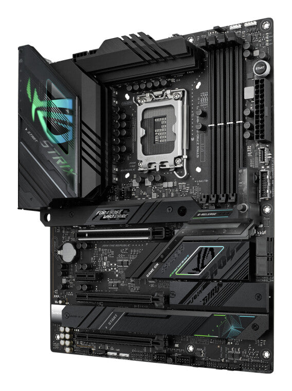 Beneath its dark heatsinks and brooding aesthetic, the ROG Strix Z790-F packs a power solution and overclocking features that push Intel® 13th Gen Core processors to new heights. Flush with advanced thermal management for quieter builds, along with support for DDR5, PCIe 5.0, and WiFi 6E, this well-equipped powerhouse delivers massive bandwidth for everything.