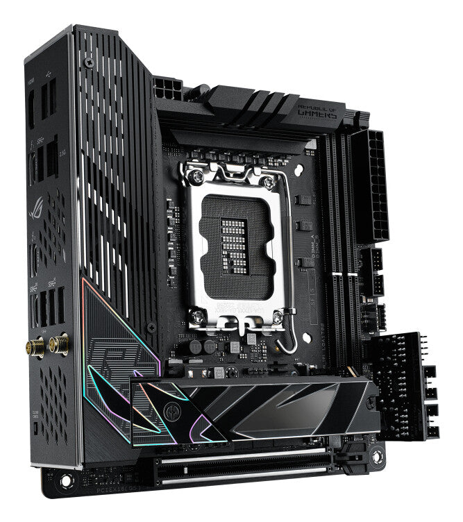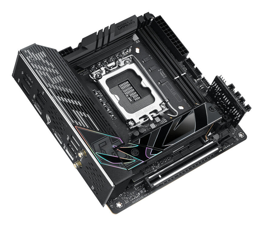Throughout its compact frame, the Strix Z790-I teems with engineering tweaks that boost CPU and memory performance and lay a potent foundation for full-size SSDs and graphics cards.