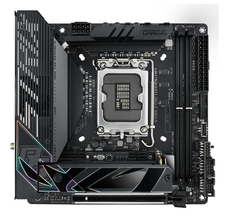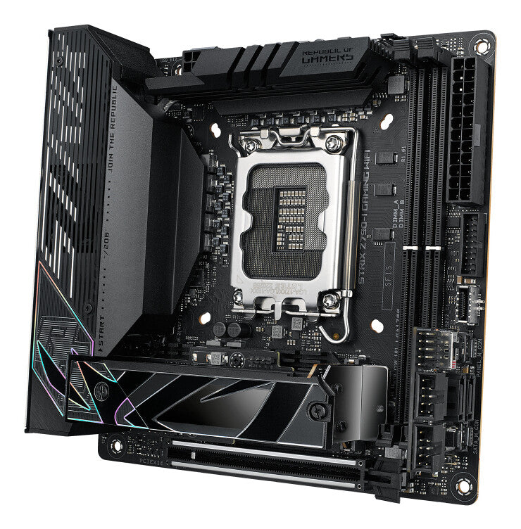 The black shrouds and gentle accents of the Strix Z790-I make it a solid foundation for nearly any rig, especially when coordinated with the vast range of offerings in the ROG ecosystem.