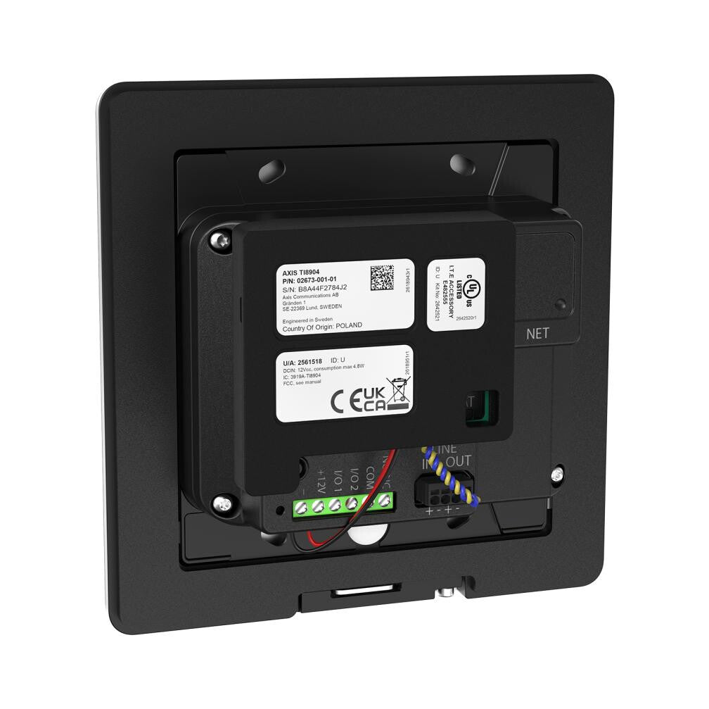 AXIS TI8904 Induction loop enhances the current features set of AXIS I8016-LVE Network Video Intercom to transmit audio from the intercom to a person’s hearing aid. This accessory is hidden in the AXIS TI8202 Recessed Mount or AXIS TI8602 Wall Mount and only visible by a t-coil sign sticker on the face plate of AXIS I8016-LVE.