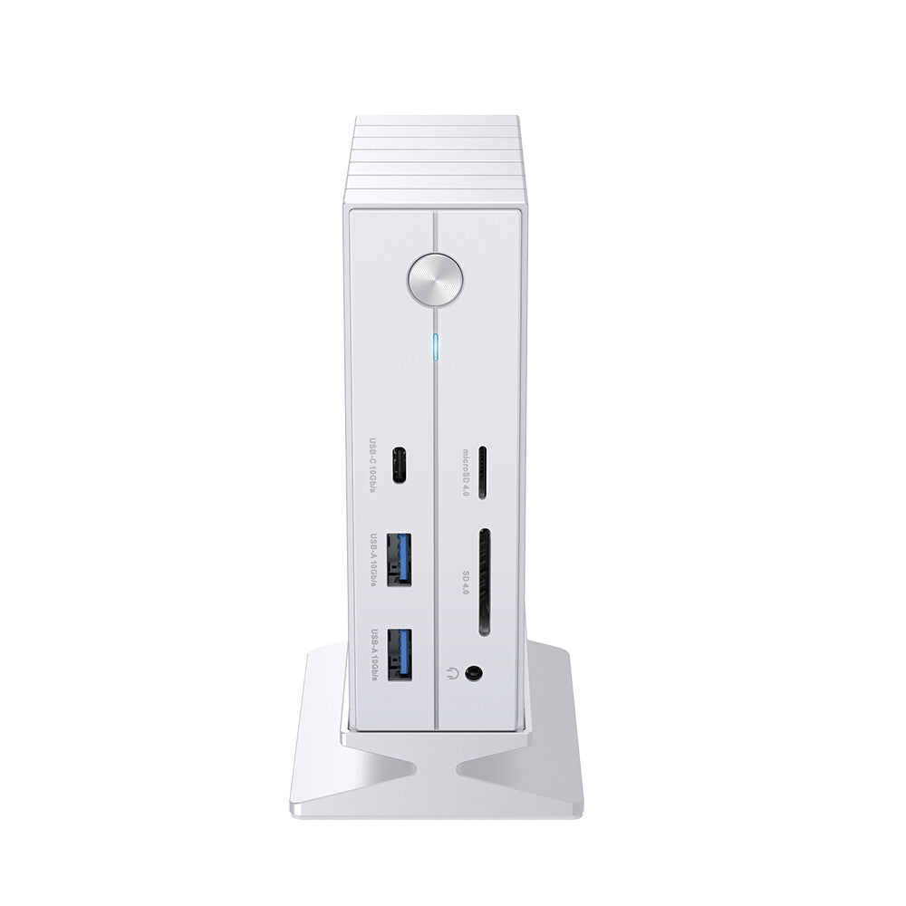 Boost productivity with a sleek USB docking station featuring triple display support, 40Gbps Thunderbolt 4, 60W charging, Gigabit Ethernet, SD slots, and one-touch power control.