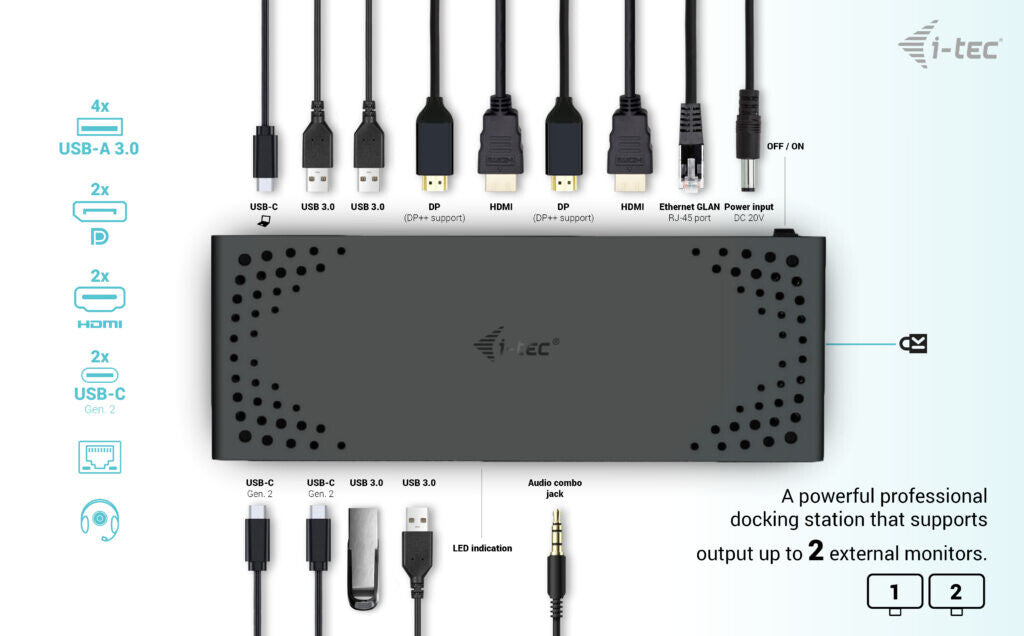 i-tec USB 3.0 / USB-C / Thunderbolt 3 Dual Display Docking Station Gen2 + Power Delivery 100W