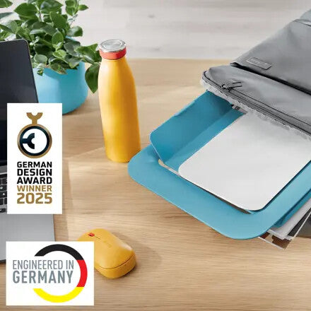 The Leitz Ergo Cosy Laptop Riser raises the screen of your laptop to increase your viewing comfort and help improve posture. Made using 80% post consumer recycled plastic, the product can be disassembled by separating metal parts from plastic for 100% recycling - high quality and long lasting to help preserve the earth’s resources. Using a laptop riser will also promote airflow, keeping the laptop battery and other components cool to maintain high levels of performance. With it's minimalist design and matt finish colours, this stylish laptop stand will improve health and wellbeing by effortlessly creating the perfect active working set-up. Combine with other Leitz Ergo products for an inviting and flexible workspace that keeps you moving all day.