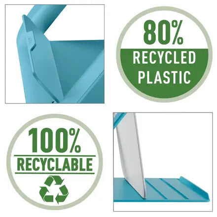 • Ergonomically designed laptop stand to maximise comfort at your workspace using 80% post consumer recycled plastic. The product can be disassembled by separating metal parts from plastic for 100% recycling