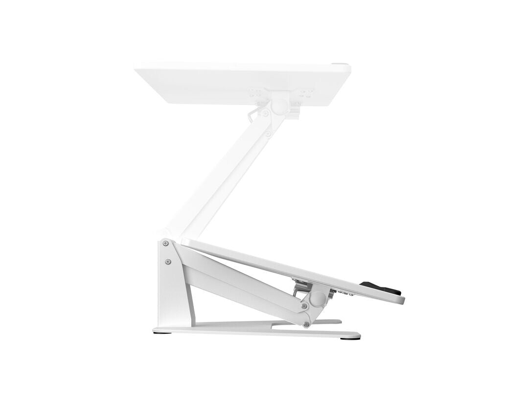 Since the M Laptop Workstation moves within its own footprint it saves space and you don’t need to worry about anything being in the way while using its up and down motion. When using the M Laptop Workstation you will find it very stable throughout the whole range of its motion and when in position up or down, you will never have to worry about a tip or drop.