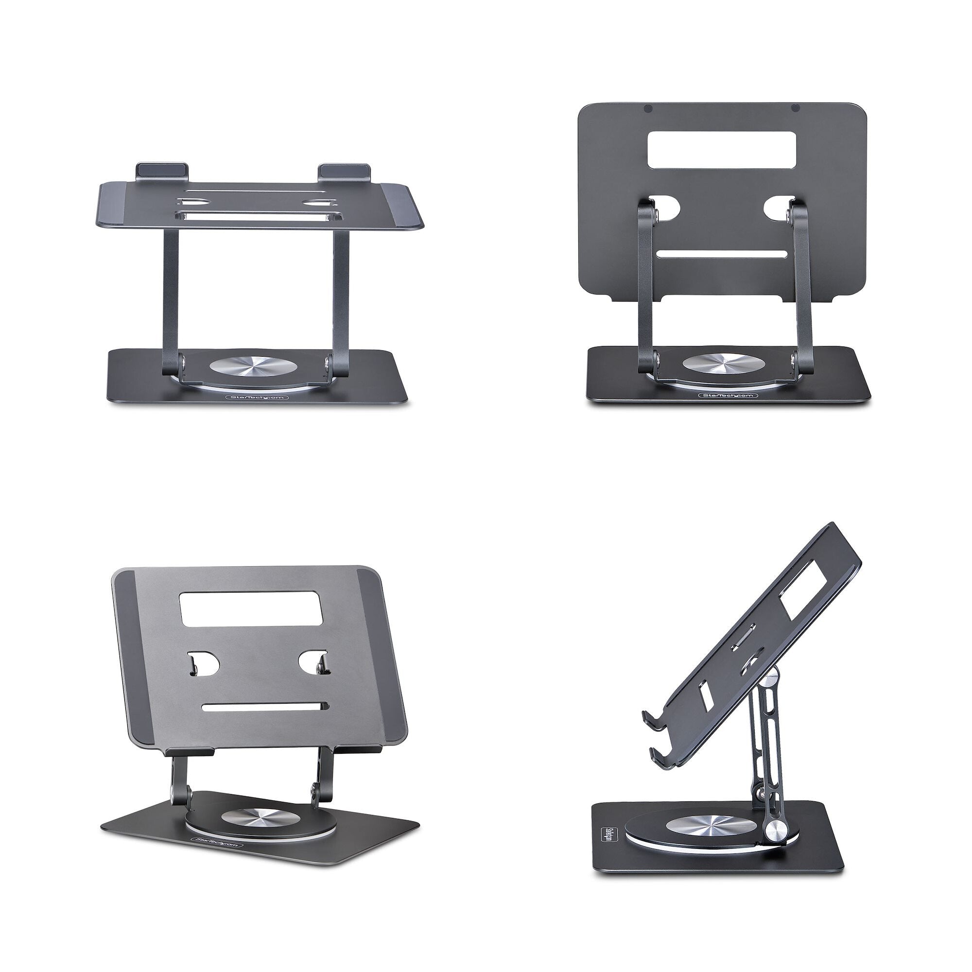 StarTech.com Rotating Laptop Stand, 360 Swivel, Ergonomic Desk Riser for Computer, Elevated Tray w/ Adjustable Tilt, Max 11lb/5kg, Aluminum Build, Portable Design