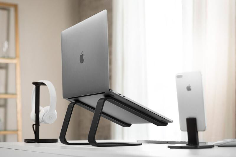 You use the most attractive laptop in the world, so why wouldn't you pair it with the most beautiful stand? With MacBook accessories, design matters, and that's why you should place Curve underneath it. Curve is an elegant, flowing aluminum stand that complements your setup. With its beautiful matte black finish and improved ergonomic design, it is the ultimate partnership of style and functionality. Use your MacBook on Curve as a comfortable desktop, or use the combo with an external display to create the perfect dual-screen setup. When it's time to go mobile, unplug and roll out leaving a modern sculpture behind.