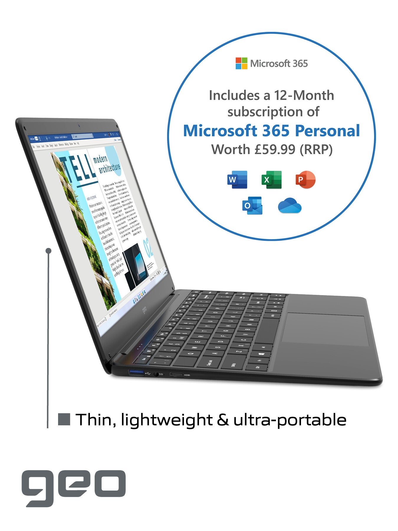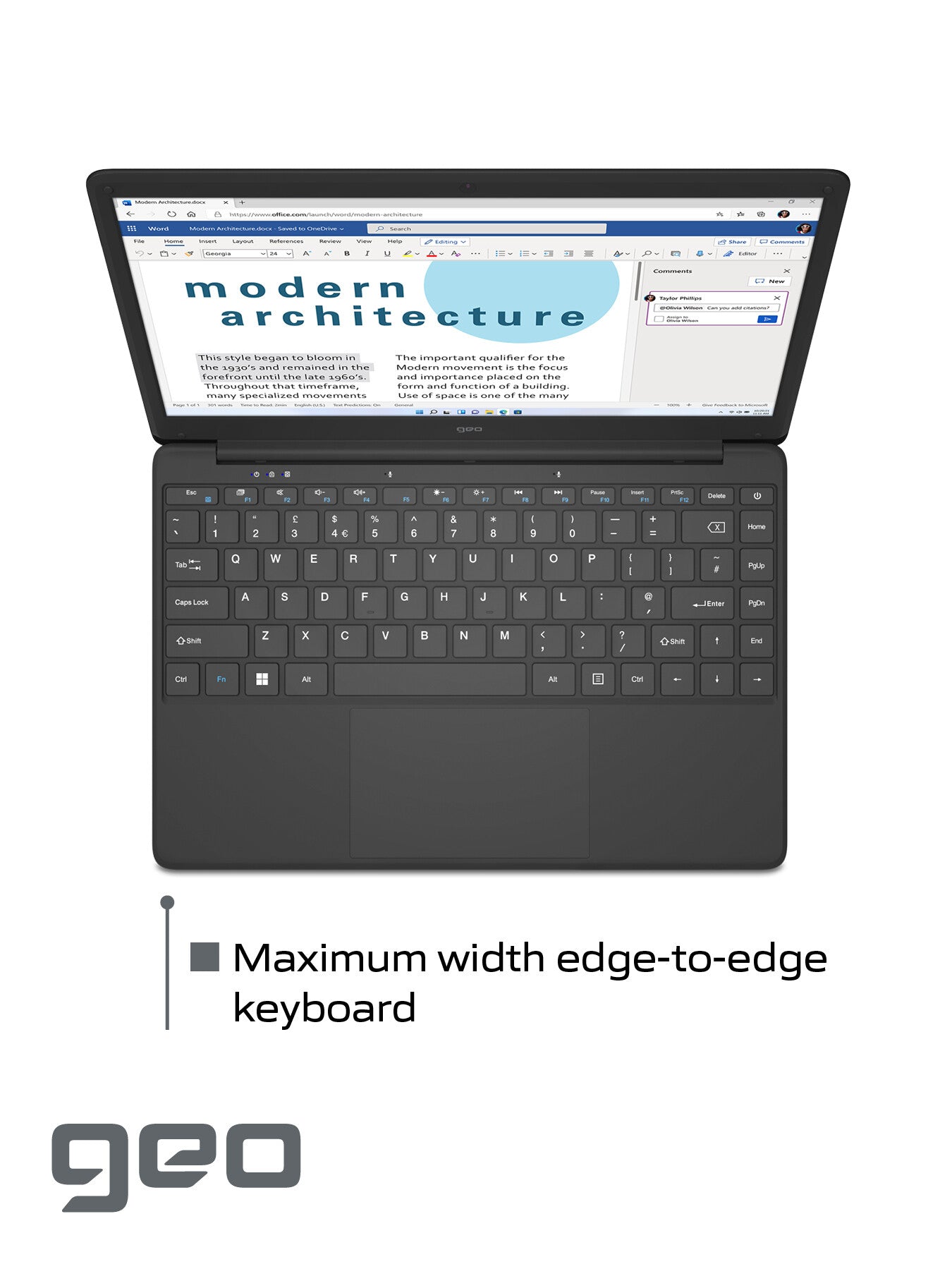 GeoBook 140 is a Windows 10 laptop and includes a 1-year subscription to Microsoft 365 to help you maximise your productivity.