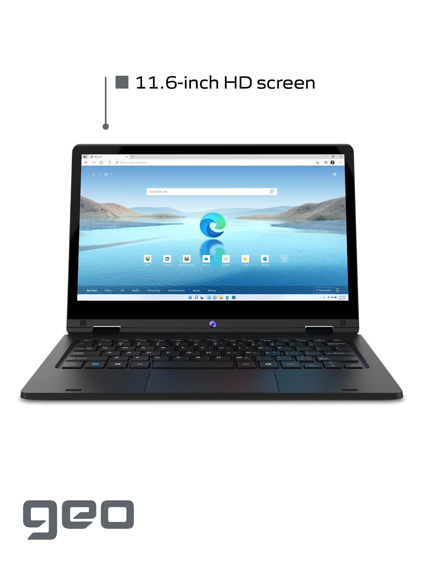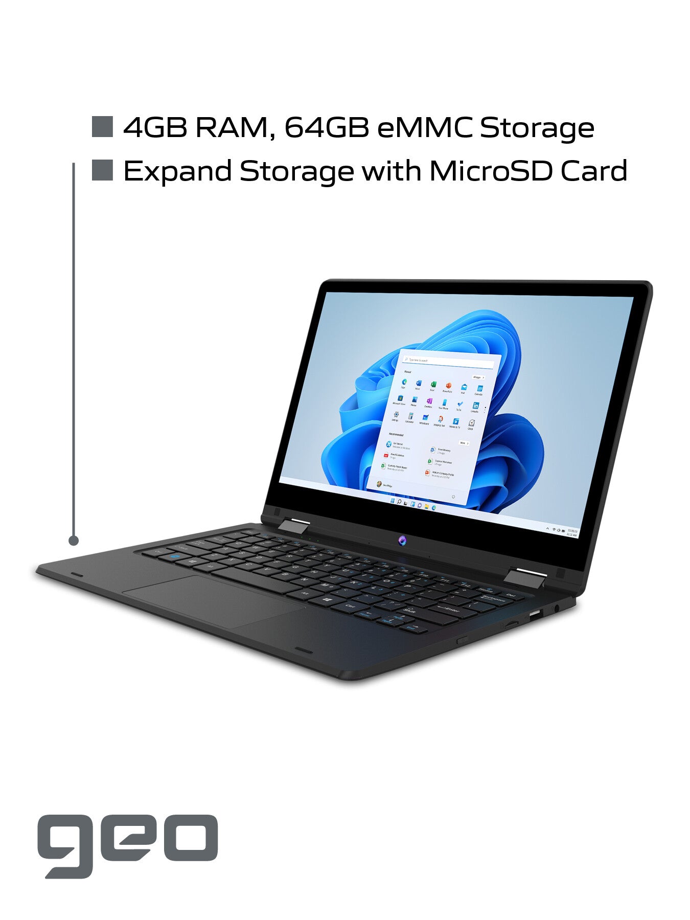 Geo Computers GeoFlex 110 Convertible Laptop and Tablet 11.6-inch HD Touchscreen Windows 10 Intel Celeron 4GB RAM