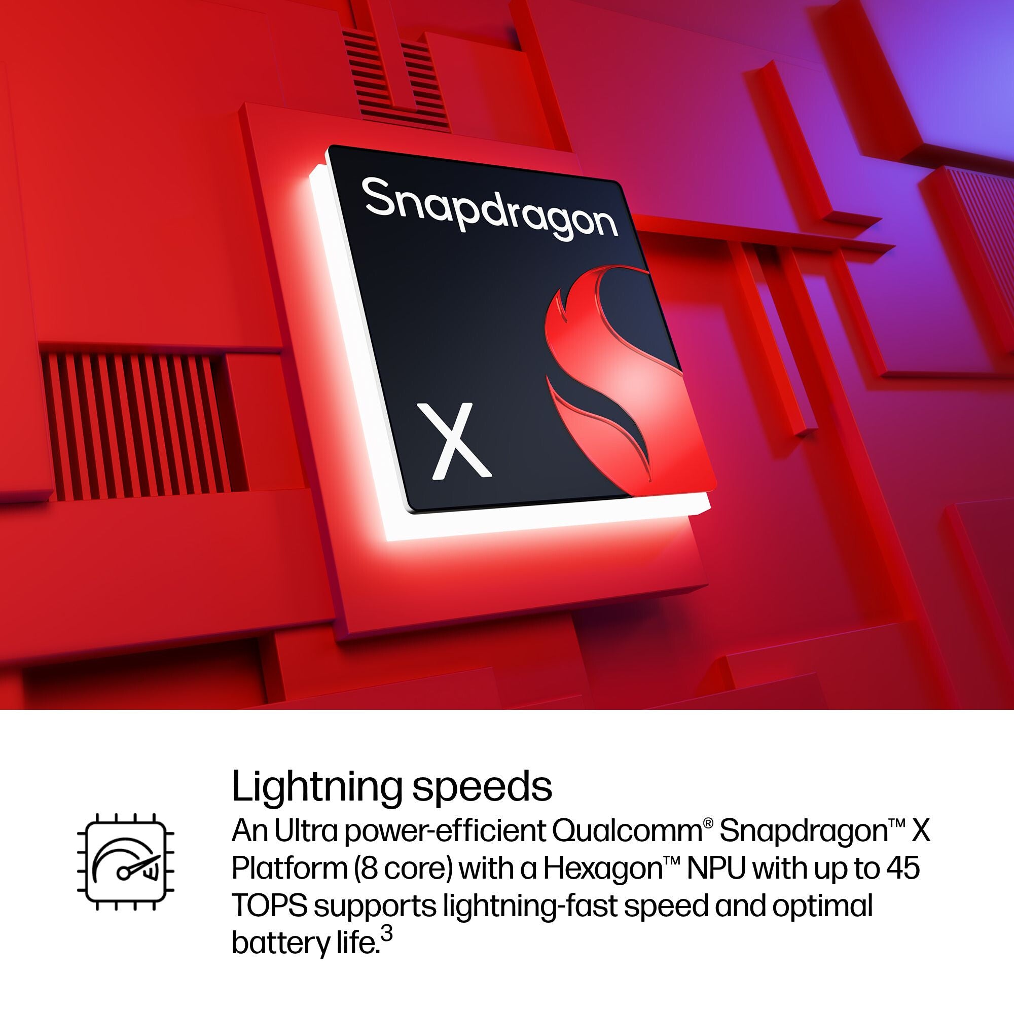 Take productivity to new levels with the HP ProBook 4 G1q 14 inch Next Gen AI PC. Utilizing the power of the Snapdragon™ X Platform[2] with an up to 45 TOPS NPU[3], you can quickly gather insights, streamline administrative tasks, and collaborate effectively with long battery life on this Copilot+ PC.[7]