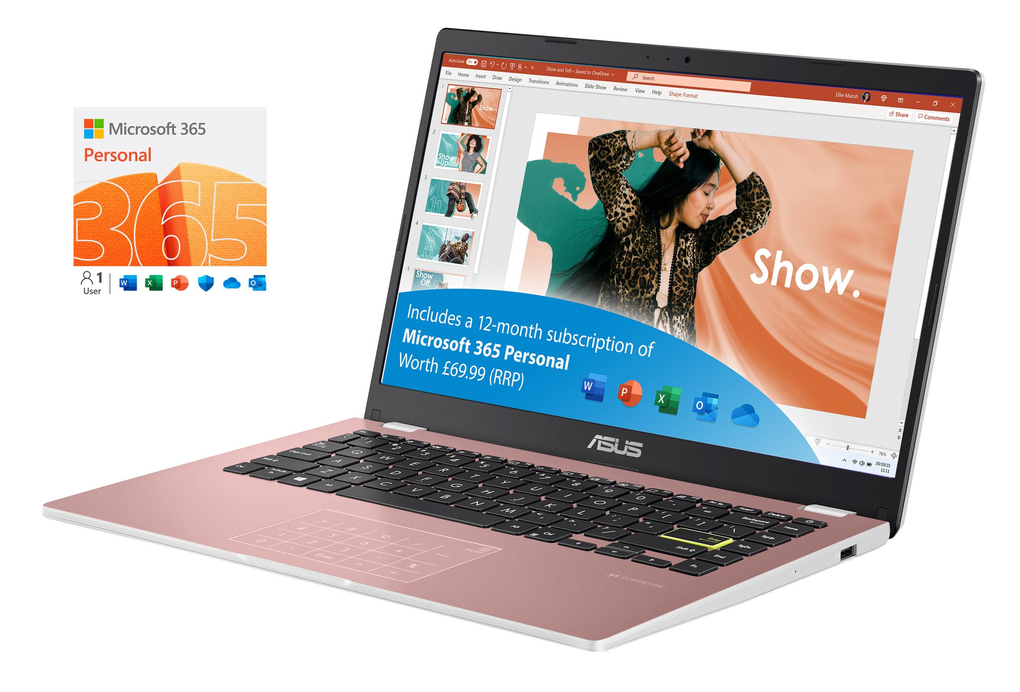 ASUS Vivobook Go 14, Intel® Celeron® N N4500 Laptop, 14" Full HD Screen, 4GB RAM, 128GB Storage, Windows 11 Home, Pink (E410KA-EK592WS)