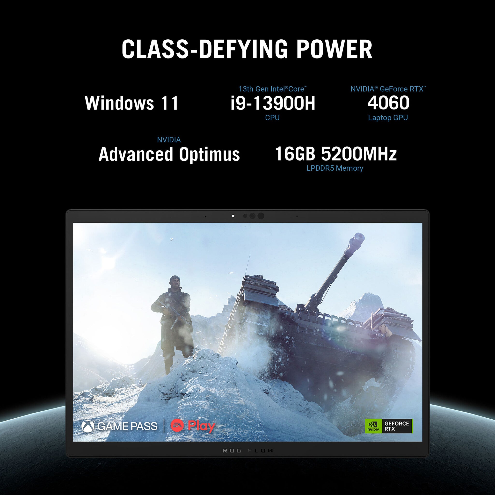 ASUS ROG Flow Z13 GZ301VU-MU001W Intel® Core™ i9 i9-13900H Hybrid (2-in-1) 34 cm (13.4") Touchscreen WQXGA 16 GB LPDDR5-SDRAM 1 TB SSD NVIDIA GeForce RTX 4050 Wi-Fi 6E (802.11ax) Windows 11 Home Black