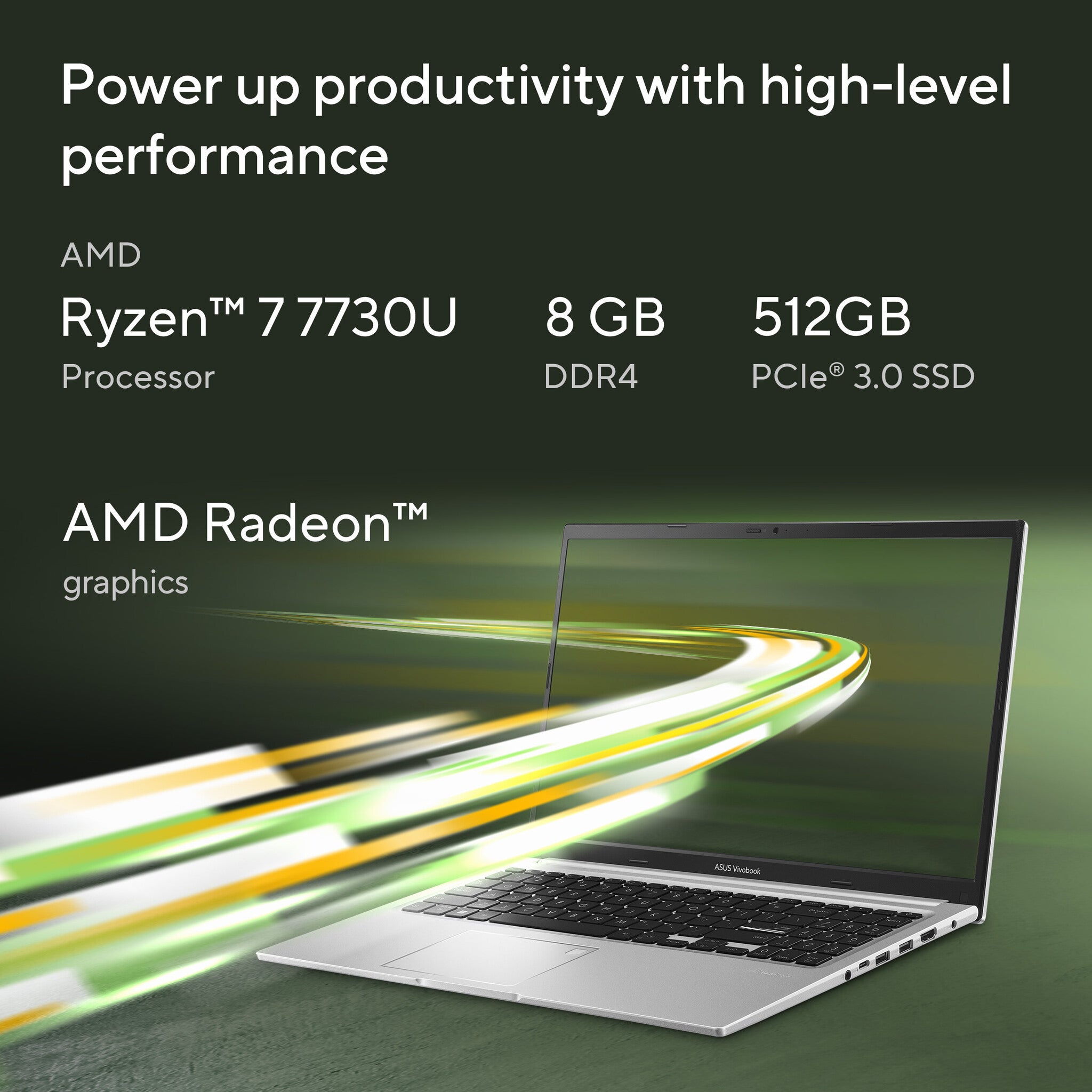 ASUS Vivobook 15 M1502YA-BQ165W AMD Ryzen™ 7 7730U Laptop 39.6 cm (15.6") Full HD 8 GB DDR4-SDRAM 512 GB SSD Wi-Fi 6E (802.11ax) Windows 11 Home Silver