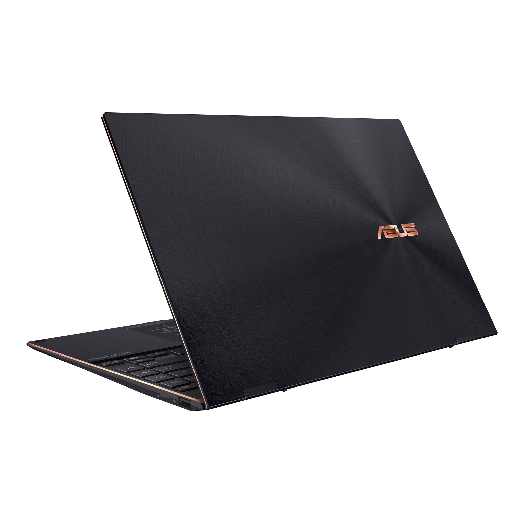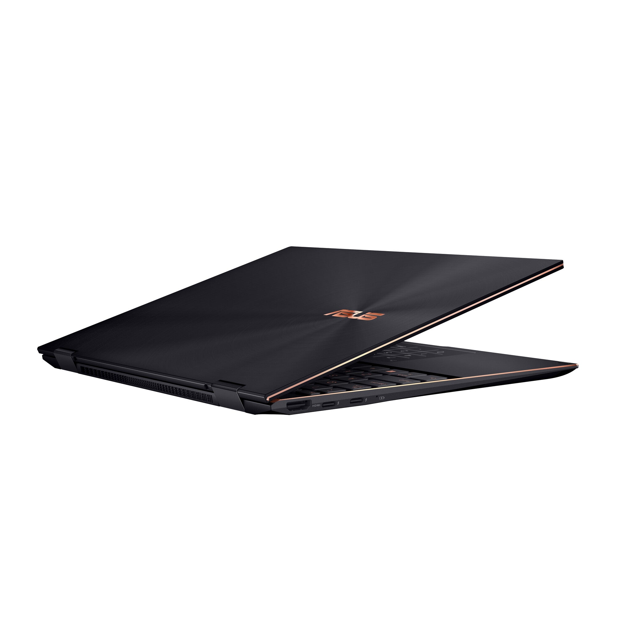 ZenBook Flip S13 OLED is supremely elegant, with Red Copper diamond-cut highlights that perfectly complement its timeless Jade Black finish. A brushed-aluminum deco bar above the edge-to-edge keyboard adds a subtle finishing touch, creating a luxurious overall look that stands out from the crowd without being extravagant. With ZenBook Flip S13 OLED, your taste is never in question.