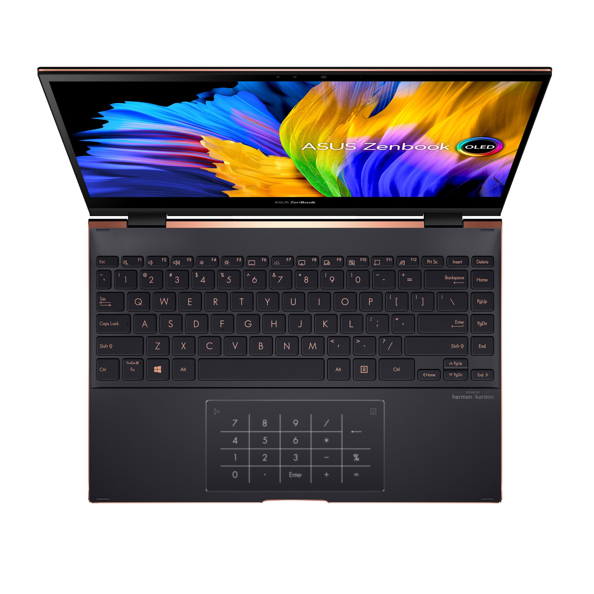 ZenBook Flip S13 OLED introduces a new edge-to-edge keyboard design that makes space for a whole row of extra function keys on the right side of the layout, improving productivity.