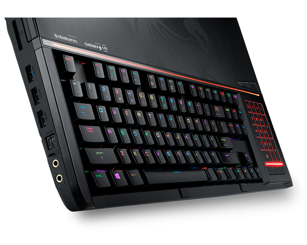Not just being the first, this gaming notebook is also the only gaming notebook in the world to have a Cherry MX Speed Silver RGB Switches onboard. These Cherry’s new MX Speed switches have the best responsive and tactile feedback with a 1.2mm mechanical actuation, light operation 45g key switches and durability of Gold contact. Designed and made by MSI, this masterpiece is now capable of shining in the dark with multi-color RGB backlighting and allows you to click and clack even faster than ever before. Extreme gaming is no longer the purpose here, but the pursuit of the perfection of an art masterpiece.
