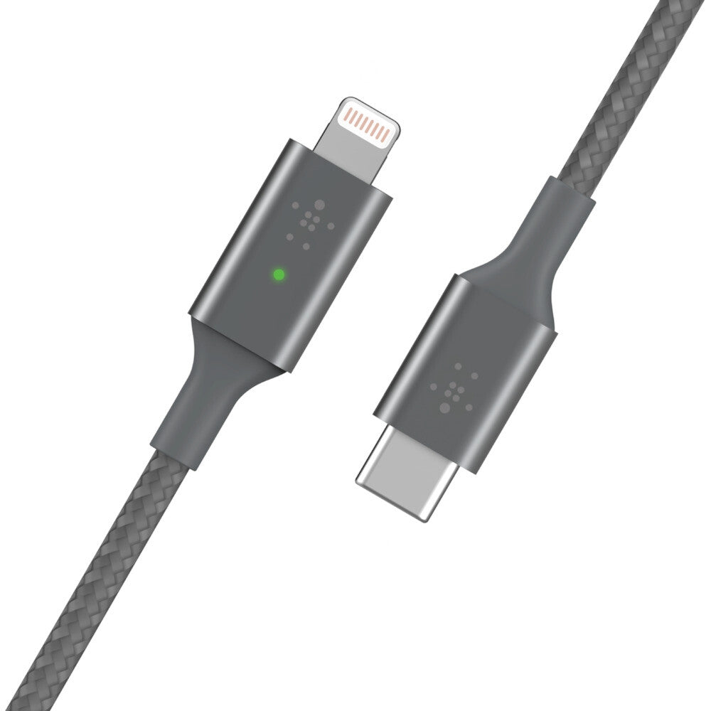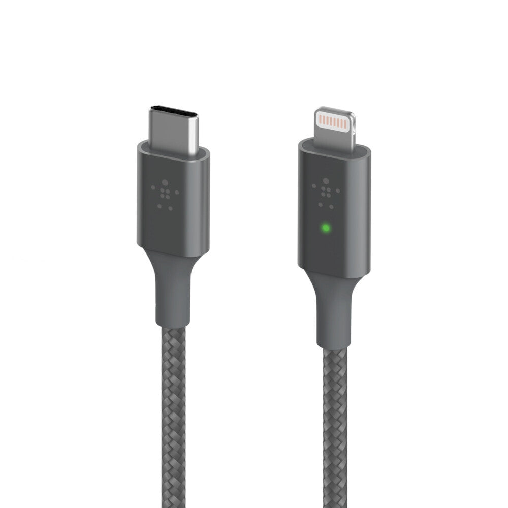 Smart technology communicates with your iPhone and changes the cable’s LED color to show status: amber is charging, green is fully charged.