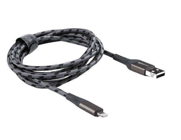Incredibly strong stylish Armour braided USB to Apple lightning cable, with boompods “BOOMFLEX” strain relief junction making a cable strong enough to go on any adventure and quickly sync and charge to your mobile devices.
