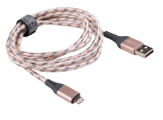 Incredibly strong stylish Armour braided USB to Apple lightning cable, with boompods “BOOMFLEX” strain relief junction making a cable strong enough to go on any adventure and quickly sync and charge to your mobile devices.