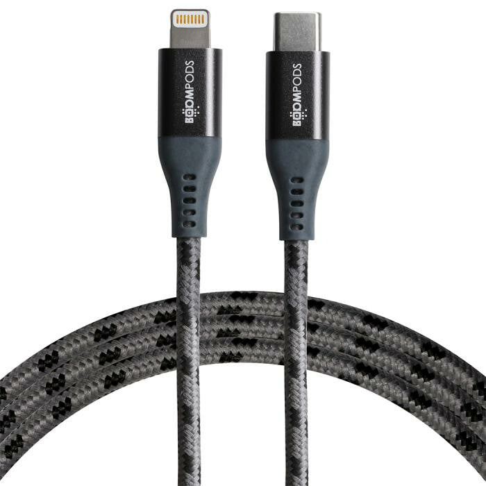 1.5m /5-foot allows you to easily charge in the car or from your night stand etc. giving you plenty of room. Equally, if you don't need it long, use the Boompods Velcro cable management included.