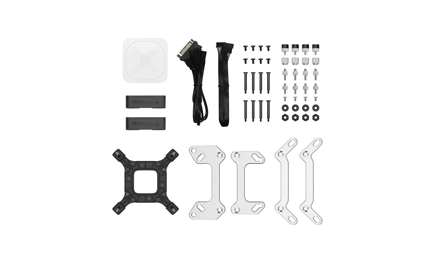 The DeepCool LS520 premium liquid CPU cooler maximizes cooling performance and low-noise efficiency with a 240mm radiator, two FC120 A-RGB PWM fans, and an infinity mirror cap design.