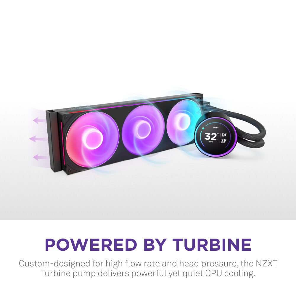 - Custom-designed NZXT Turbine pump delivers high flow rate and head pressure for powerful yet quiet CPU cooling.