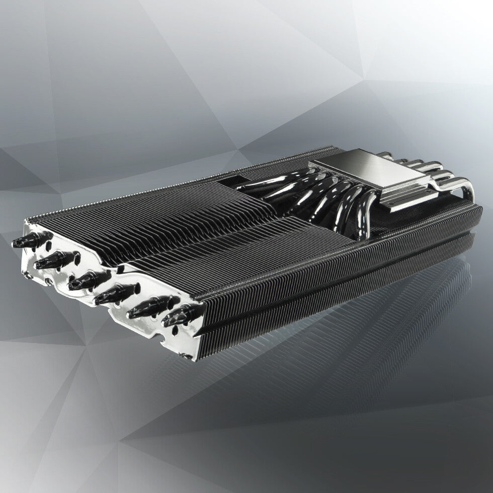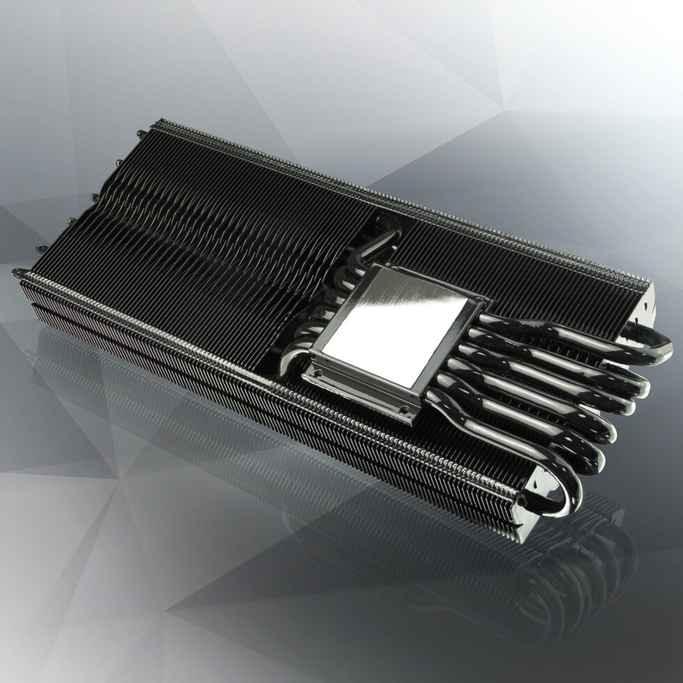 MORPHEUS 8057, whole heatsink black coated, a superior high-end VGA cooler, designed to meet cooling capacity up to 360 Watts of TDP. Morpheus 8057 comes with 12 copper heat-pipes, 129 fins, mirror copper base, and the option to install 2×120mm fans; those outstanding combination and design provide best acceleration of heat dissipation process to assure your VGA board running under optimal temperature. Additionally, Morpheus comes with 3pcs copper & 8pcs aluminum heat-sink for cooling chips efficiently. Moreover, Morpheus 8057 is multi-compatible with most modern nVIDIA & AMD GPU's.