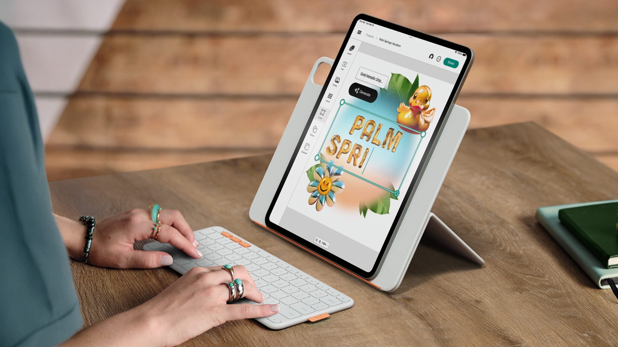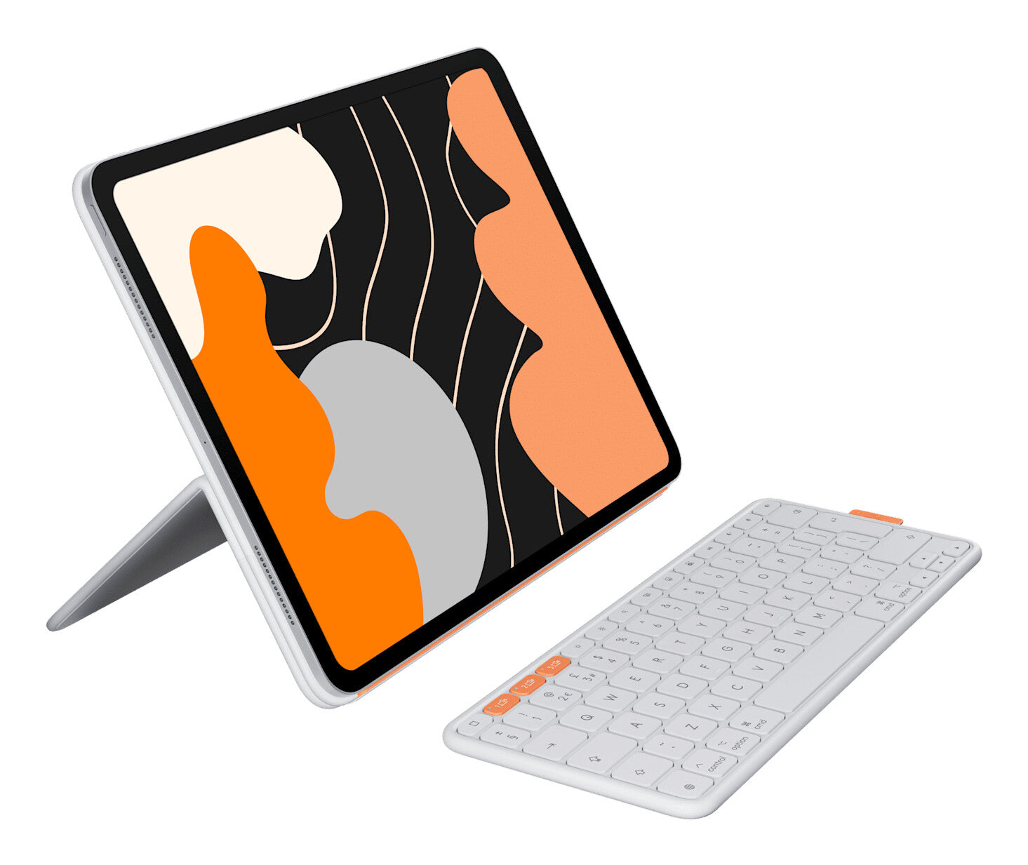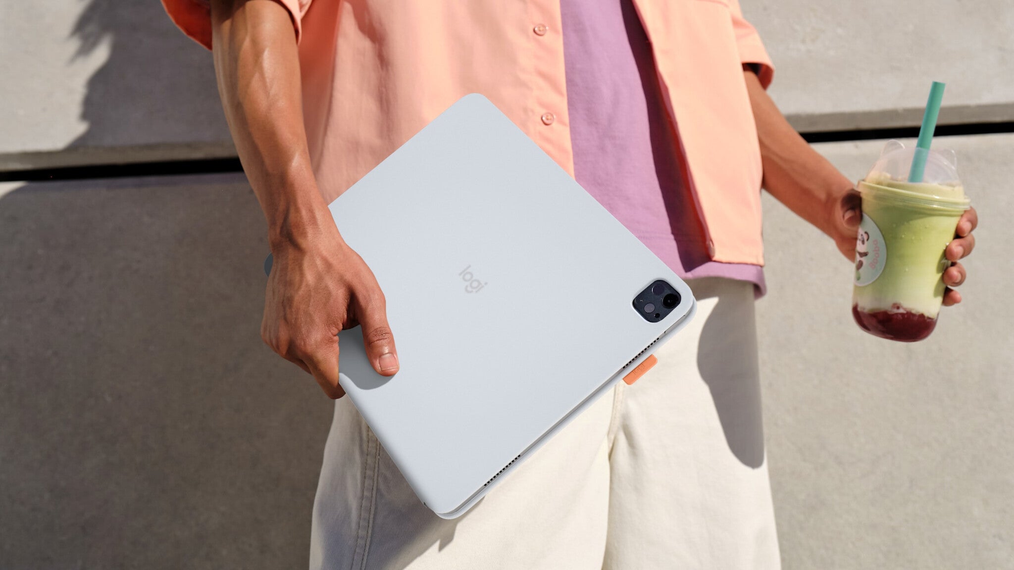 Flip into fun. Or focus. Detach the Bluetooth keyboard and place it anywhere. Then snap it back onto the case magnetically to stow it away. Adjust the kickstand to find the right angle, and position iPad in landscape or portrait modes.