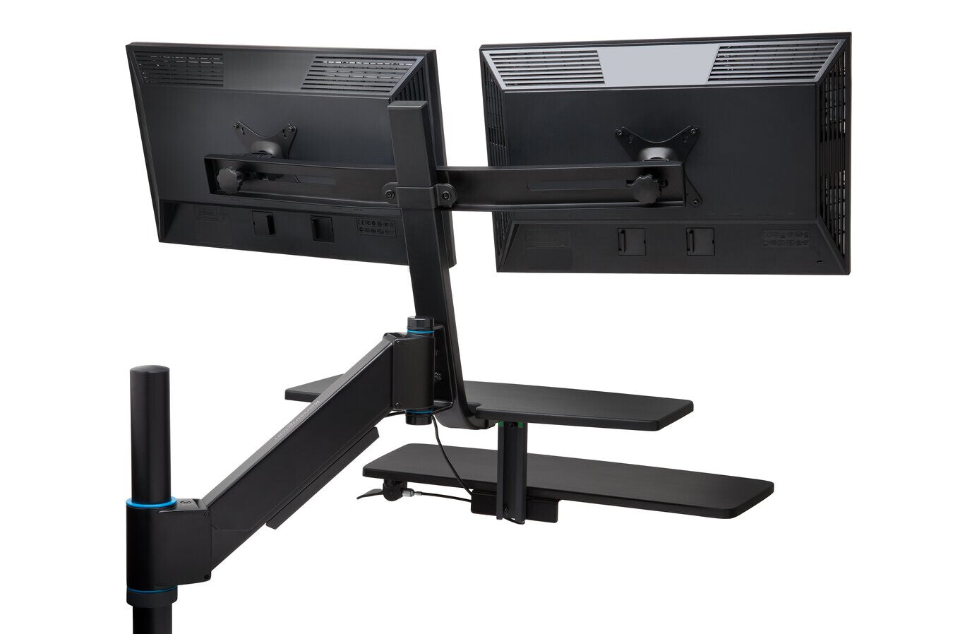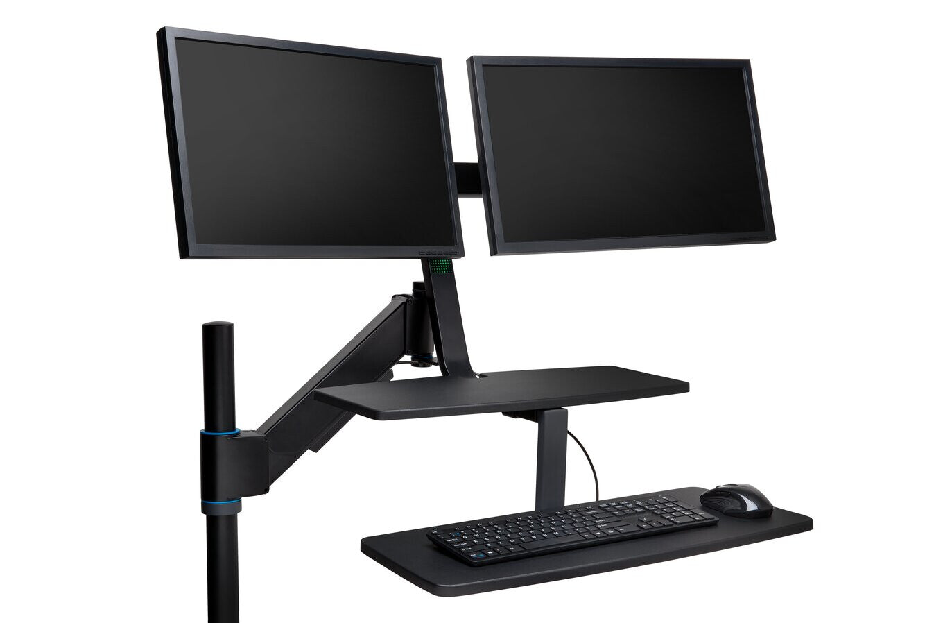 Take productivity to a professional level by adding a dual monitor arm to your SmartFit® Sit/Stand Workstation. Studies have shown using two monitors can have a dramatic effect on workflow. With dual monitors on your workstation, not only are you getting the ergonomic and health benefits of standing while you work, you’re also getting a lot more work done. Our patented SmartFit System lets you find your personal comfort color to set the monitors at the ideal viewing height, plus the arm installs quickly to your Sit/Stand workstation and is VESA-compatible for monitor screens up to 24 inches.