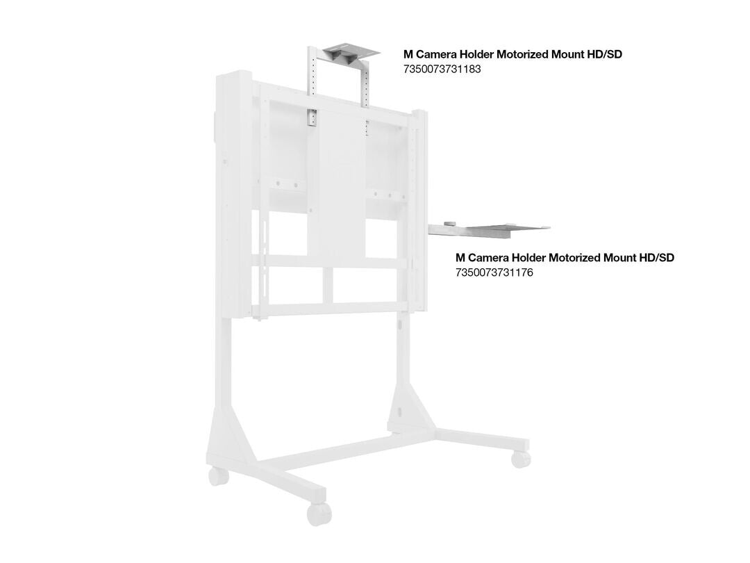 This camera holder is designed as a videoconference camera shelf that installs easily on the M Motorized Floorstand HD series.
