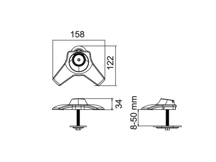 Rigid construction can hold up to 6 monitors weighing at 8 kgs each. M Desktopmount Single / Dual / Triple Stand Grommet Base manages table widths of up to 50mm.