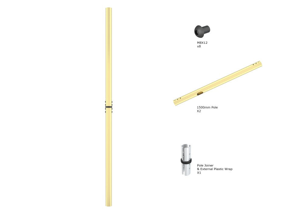 M Brass Extension Pipe 3m - Brass Extension Pipe, Part for Pro Series, steel, pole length: 2 x 150cm, 50mm diam. - brass